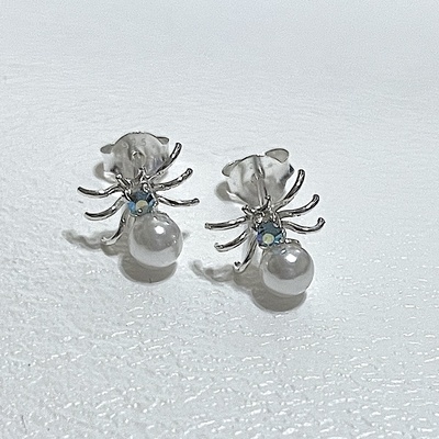 Spider with Swarovski Crystals and Faux Pearls Earrings