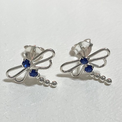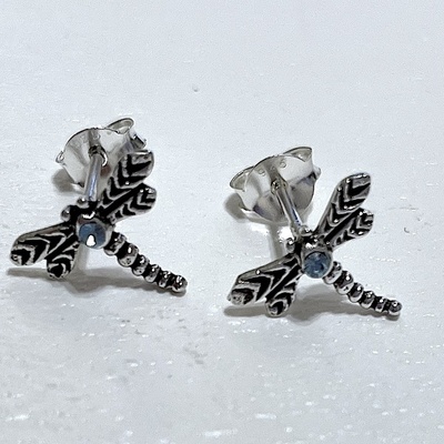 Dragonfly with Sapphire Swarovski Crystals Stud Earrings