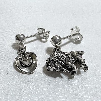 3D Buffalo and Cowboy Hat Earrings
