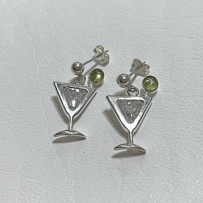 CZ and Peridot Martini Cocktail Earrings