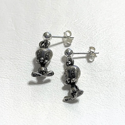 3D Looney Tunes Tweety Bird Sterling Silver Earrings
