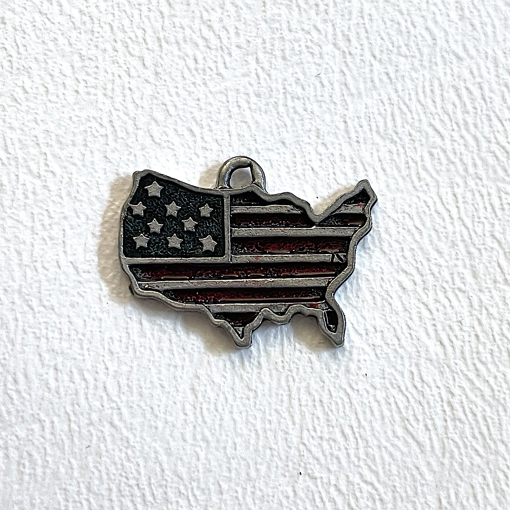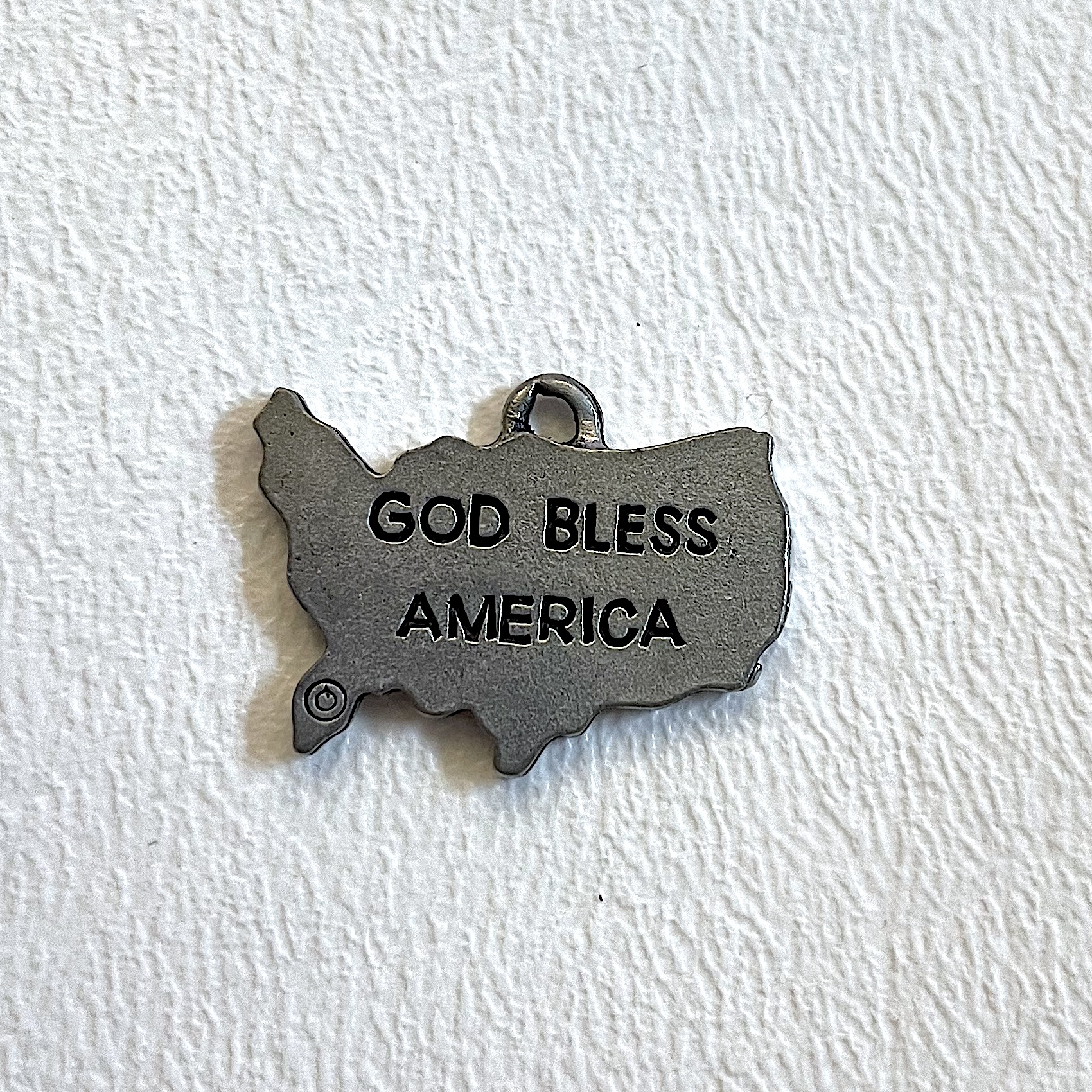USA with American Flag and God Bless America words on back hand painted and Silver Pewter Charm: 17x22mm All charms come with an attached free sterling silver jump ring.