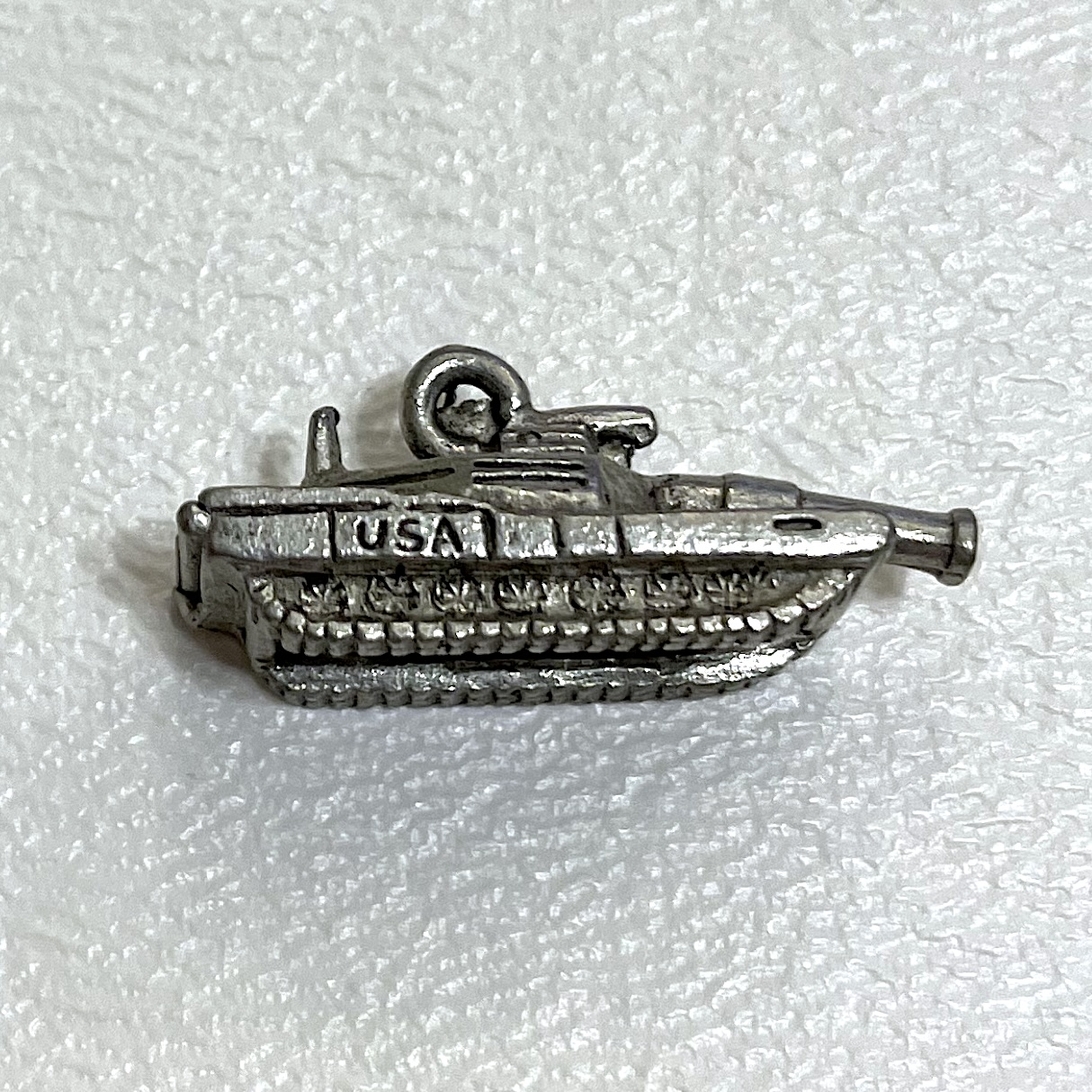 USA Military Tank Large Silver Pewter 3D Charm: 25x10mm All charms come with an attached free sterling silver jump ring.